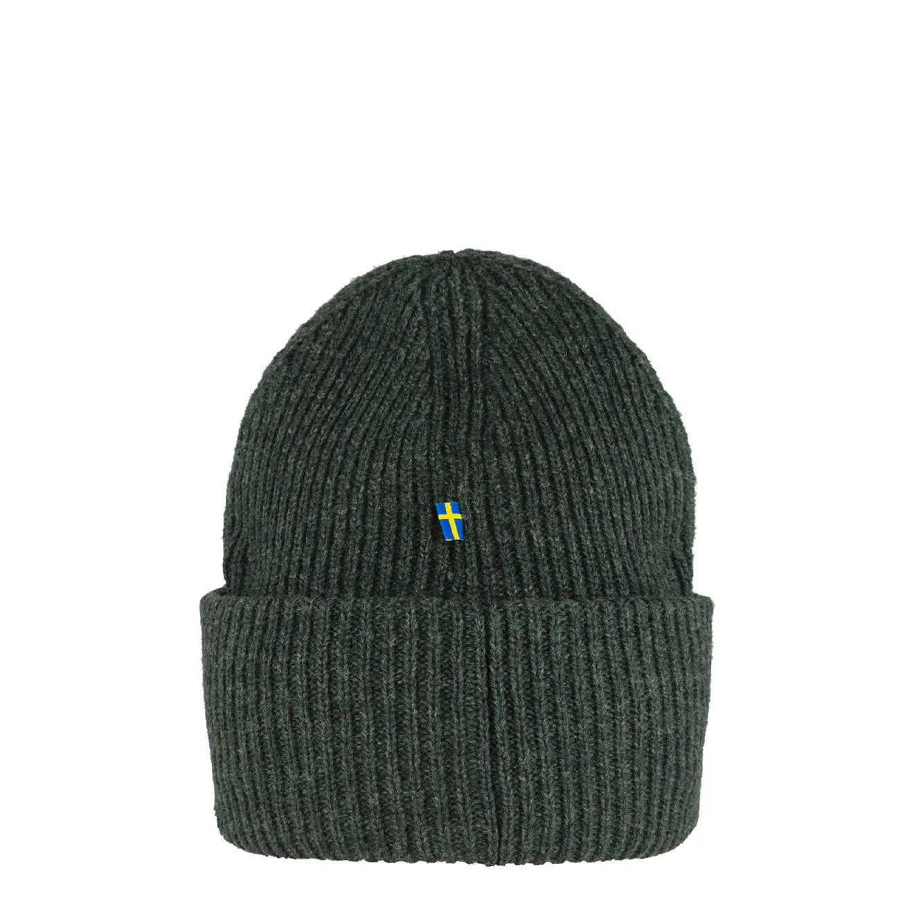 Rib-knitted hat in soft. warm lambswool. Robust. two-layer knitting with wide folded edge. Embroidered Fjällräven emblem on the front.