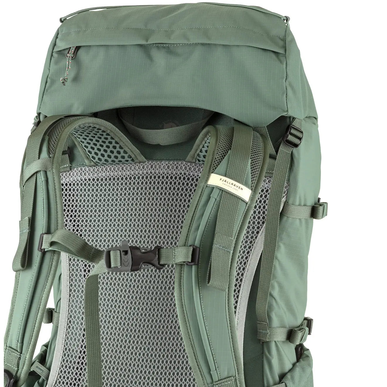 Lightweight. hardwearing backpack with fantastic ventilation and excellent carrying comfort – perfect for hiking in warm/humid climates. The carrying system is lightweight and stable with a fixed back length. ergonomic shoulder straps and a supportive hip belt with air mesh. The aluminium frame and mesh back panel let air circulate freely against the back. Now made of lightweight yet durable 210D nylon ripstop fabric with a reinforced base in 500D nylon. both 100% recycled. Volume: 35 litres.
