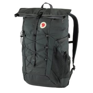 The Abisko Hike Foldsack is a versatile and lightweight 25L backpack. perfect for dayhikes and travelling. Made from 100% recycled nylon. this backpack has a fold-over. zippered closure that is secured with a plastic side release buckle. The fold-over closure is easy to use and can provide 4-5 liters of extra pack space or to secure a sleeping mat or other longer items. Zippered pocket hidden under the fold. Fixed back panel system with ventilating air mesh on the back and shoulder straps; the adjustable chest strap and hip strap are both removable. Sleeve pocket and zippered pocket inside and two oversized side pockets on the outside. Attachment on the front for a hiking pole or ice axe. Bungy cord on the front panel. If you’re looking for a highly functional backpack then look no further. Abisko Hike Foldsack has got all the functionality needed for everyday outdoor life.