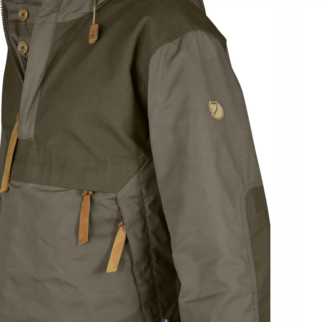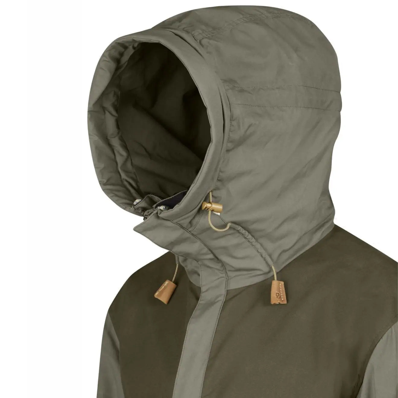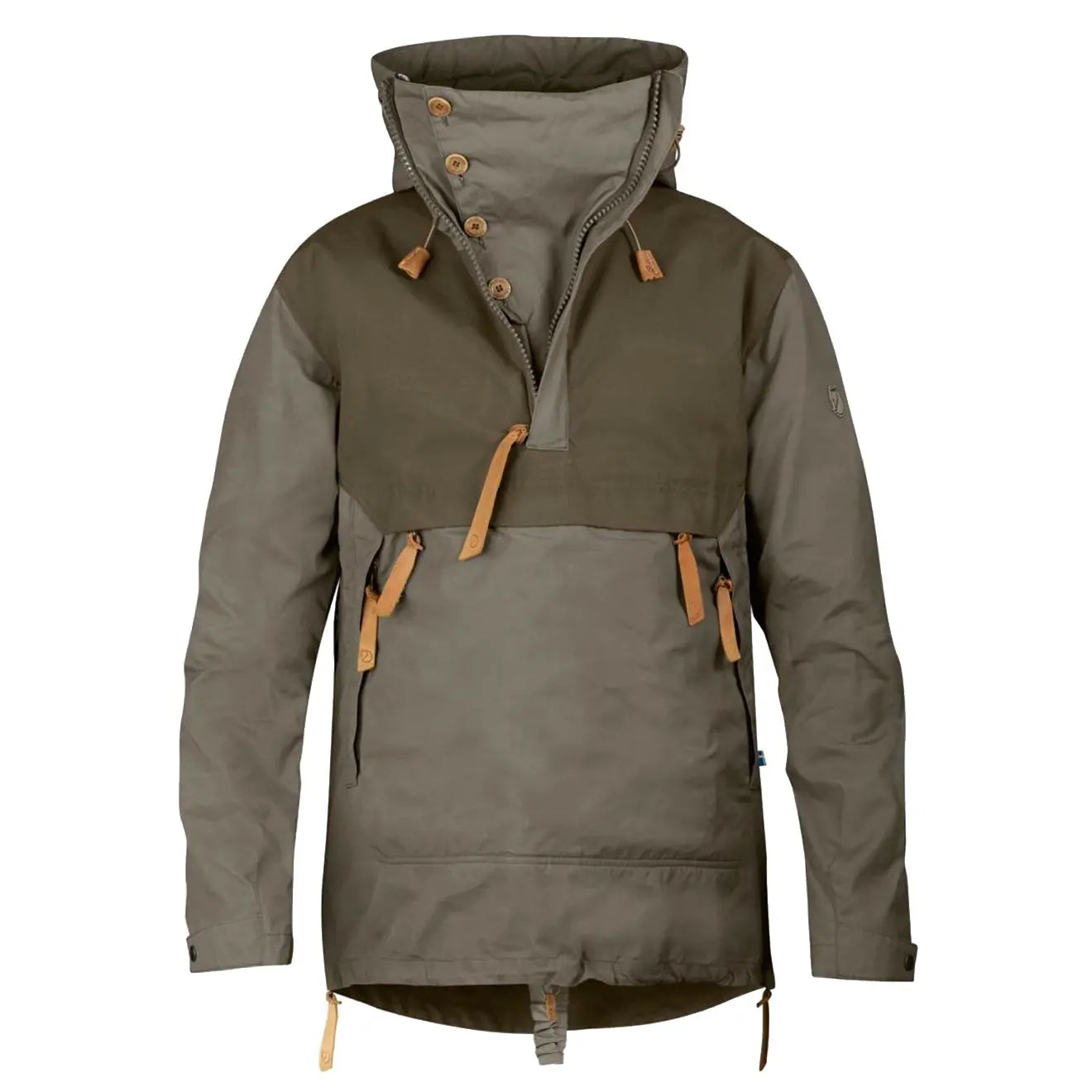 The Anorak No. 8 is made from G-1000 lite Eco with high levels of ventilation. making it perfect for outdoor activities in heavy weather conditions. For even further protection from the elements. there are reinforcements in G-1000 Eco over the lower back and sleeves. The jacket has a large spacious hood with a stiff brim and internal wiring. ensuring you are well protected from windy conditions. The Anorak has a half zip to the front with an external storm flap and button to the top. As well as this. there are two large zips to the sides that can be used for extra ventilation which add ease when taking the jacket on and off.