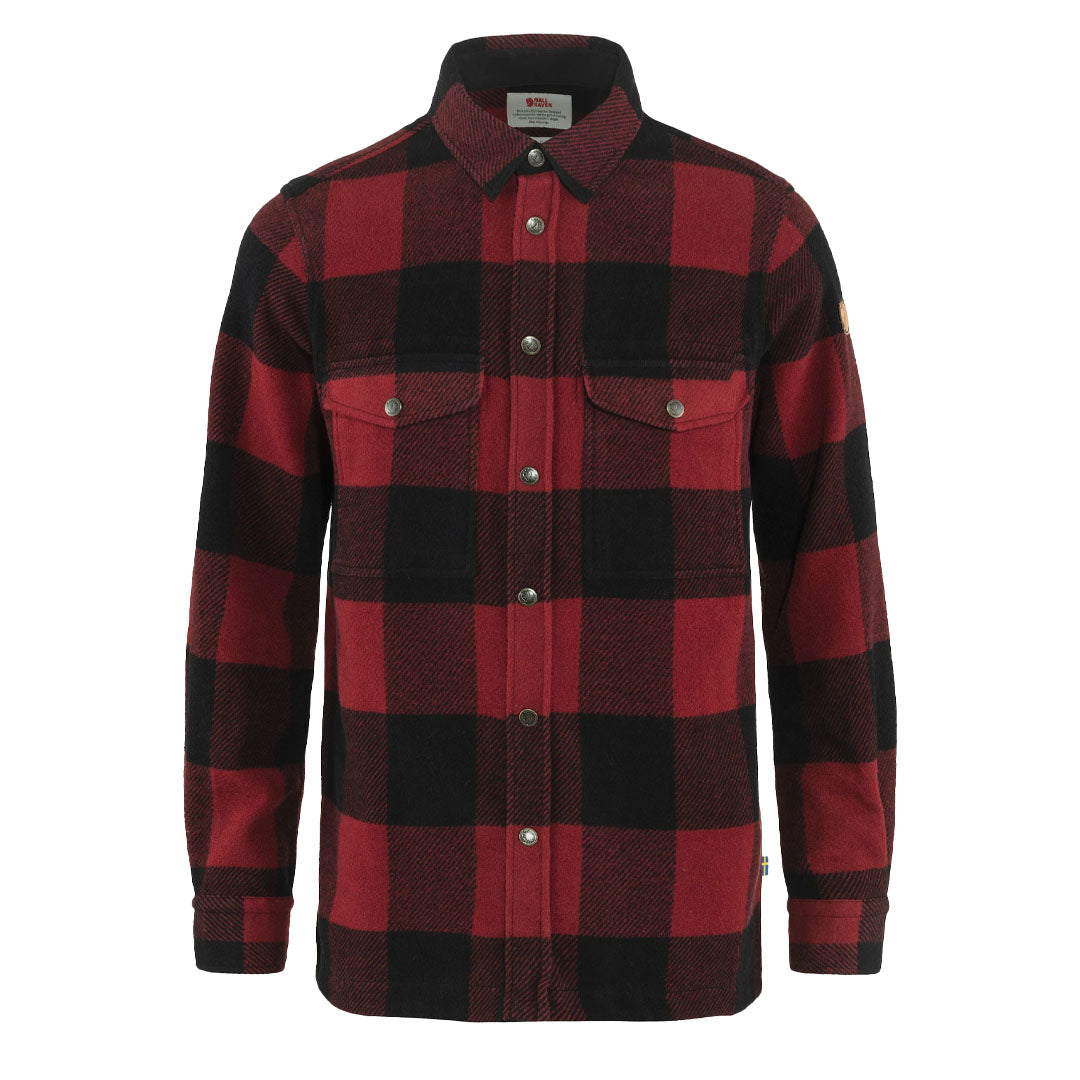 Robust. warm shirt in flannel made with recycled wool. It combines the warmth of wool with the durability of synthetic fibres. Details in G-1000 on the inside of the collar. cuffs. pocket flaps and front opening. Both chest pockets are positioned a little lower than other shirts for easier access. Works well as both a light jacket on mild autumn days and as a robust insulating mid layer on cold outings in the mountains.