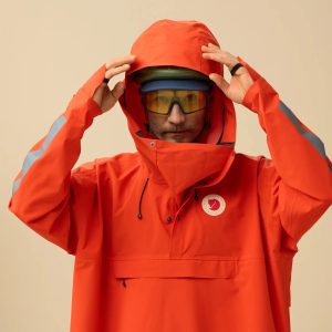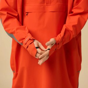 The Fjällräven Hoja Rain Fox Poncho in Flame Orange is a waterproof. breathable poncho designed for cycling in wet weather. It features reflective details. including a large fox logo on the back. for enhanced visibility in low light. A helmet-compatible hood. hand-covering cuffs. and an elastic waistband offer extra protection and comfort. while a large kangaroo pocket keeps essentials within reach. Ideal for cyclists who prioritise functionality and safety in the rain.