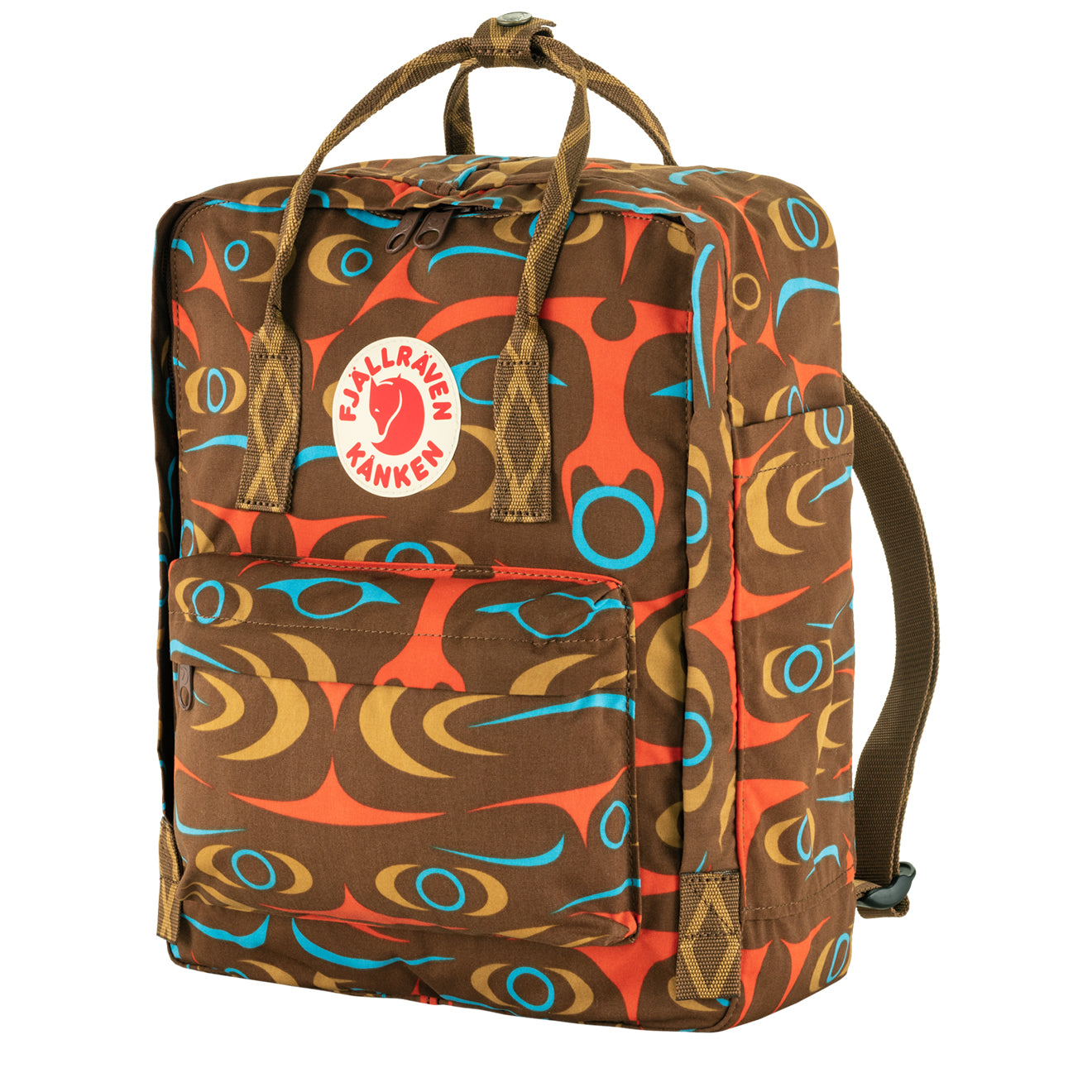 K?nken Art is what you get when you invite artists to express their relationship with nature using the classic backpack as their canvas. This special edition K?nken backpack is made from G-1000 HeavyDuty and features the artwork of Charlene Johnny. a Coast Salish artist from the Quw’utsun tribes of Duncan. BC. who works in various mediums to explore and express her ancestral artwork. Part of Fj?llr?ven’s Arctic Fox Initiative. where a proportion of sales goes to environmental and climate projects. NOTE: Appearance of each backpack will vary slightly due to the patterned fabric.