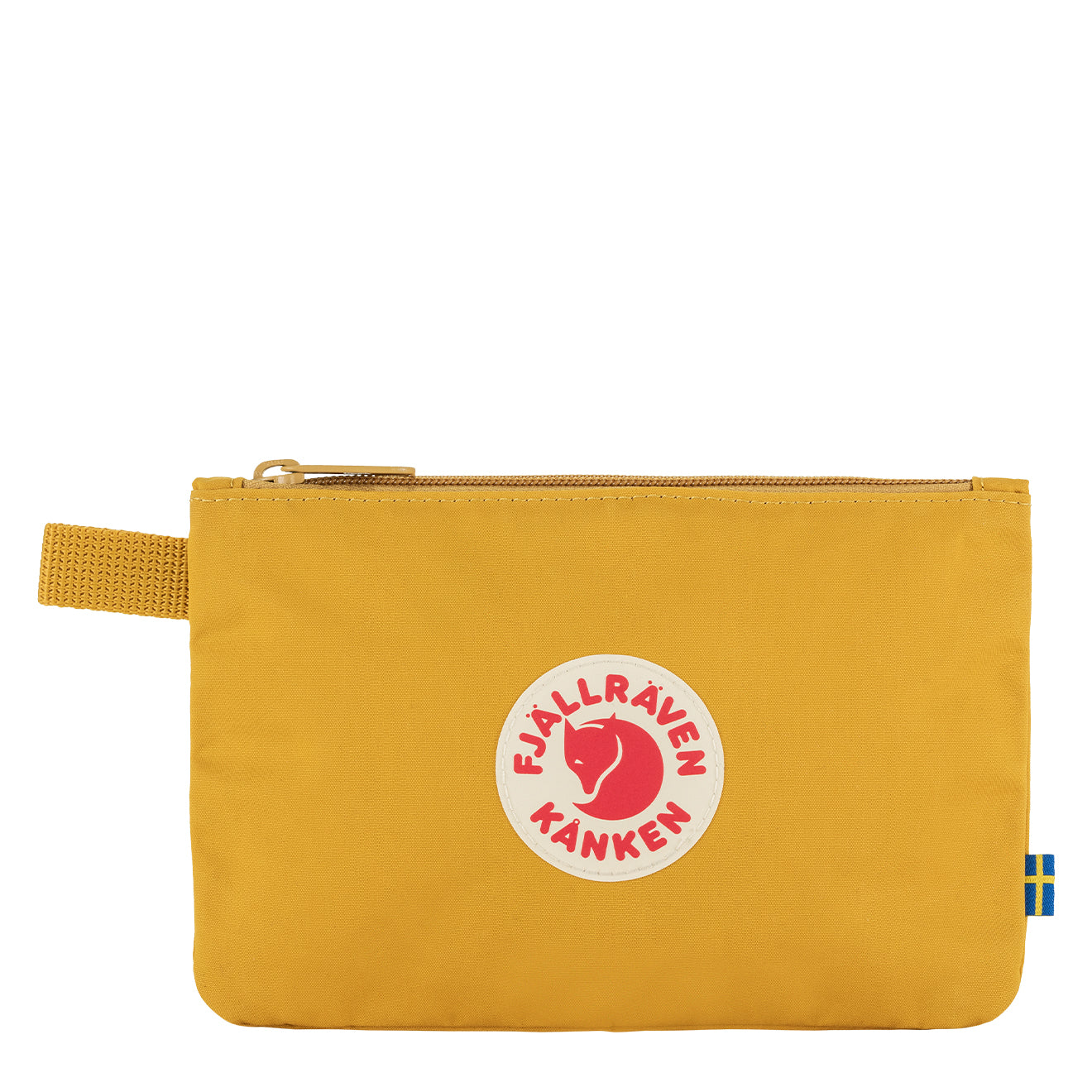 Fjallraven Kanken Gear Pocket in Ochre. Kånken Gear Pocket is a compact little bag for smaller tools. earphones. chargers. etc. It can also be used as a minimalistic toilet bag. Zippered main compartment and a loop to hang the bag on the side. Measures 14 x 21 cm.