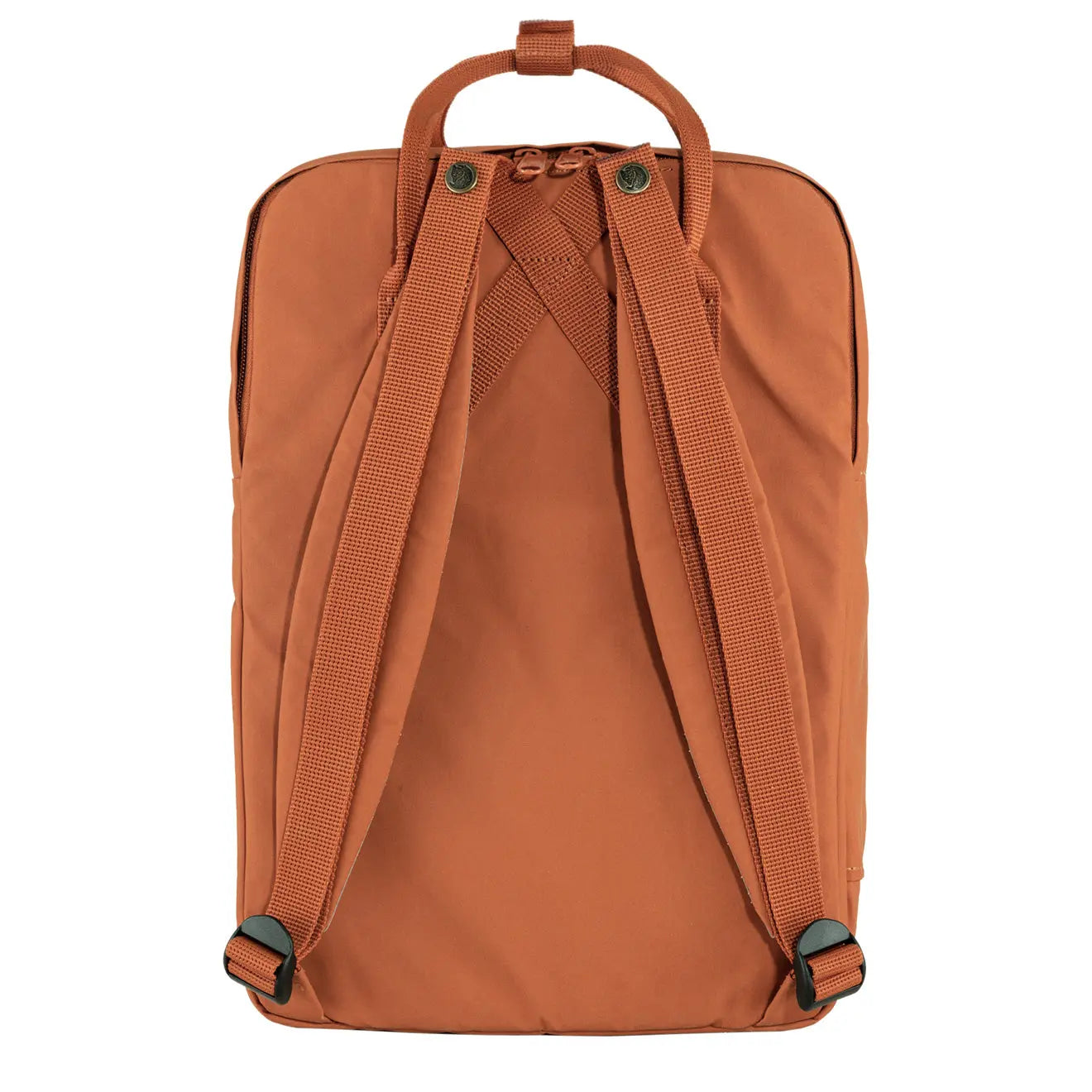 The Fjallraven K?nken Laptop 15 is specifically designed to carry a 15 laptop safely. as well as your other belongings. It is made from hardwearing Vinylon F fabric and has a separate. padded compartment that provides safe storage for a 15 Inch laptop computer. It has an extra zippered pocket inside the main compartment. zippered pocket on the front. two side pockets and comfortable padded shoulder straps.