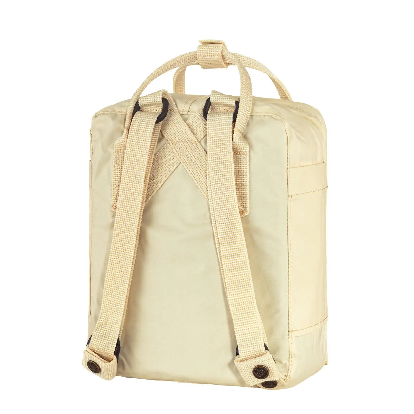 Made from durable. lightweight and showerproof Vinylon F to keep belongings safe and dry. The Fjallraven Kanken Mini includes a functional main compartment with large opening making it easy to add and remove belongings. two side pockets and a zippered pocket in the front. A seat cover in an internal pocket protects the back and provides a rest for tired legs.