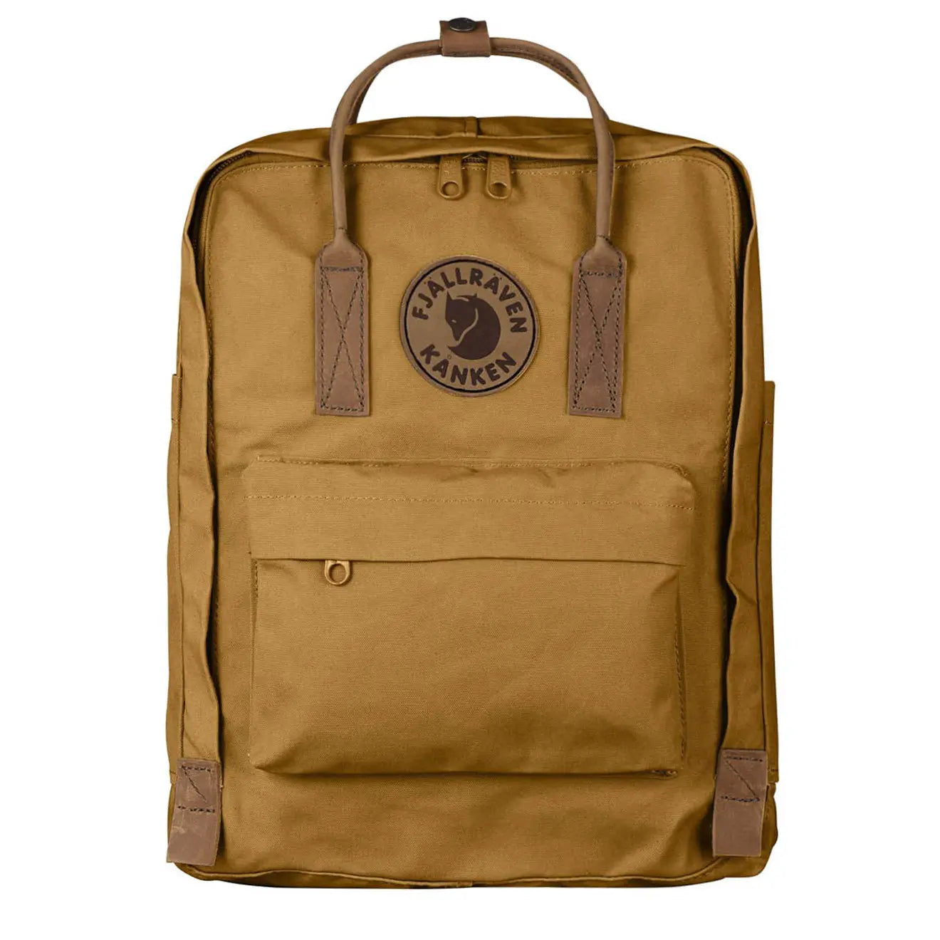 The Fjallraven Kanken No. 2 Backpack re-envisages the style of the original Kanken in G-1000 Heavy Duty fabric. with tan leather trims and detailing. vintage brass strap adjusters and Arctic Fox embossed poppers.