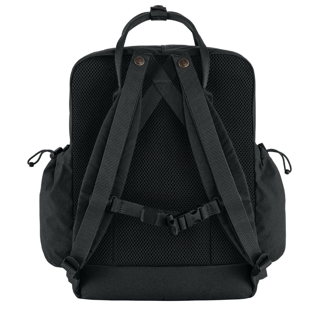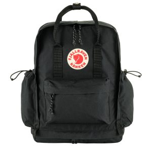 Fjallraven Kanken Outlong Backpack in Black. the new member of the Kånken family ??a slightly more spacious version of everyone’s favourite backpack. In addition to the classic Vinylon fabric. front pocket and Kånken aesthetics. Kånken Outlong has a zippered compartment in its base. large side pockets. and webbing attachment points that can be used for bike lights or other items. The sleeve pocket in the main compartment has a padded base for a laptop and a seat pad. Perfect for commuting. hiking and other outdoor activities.