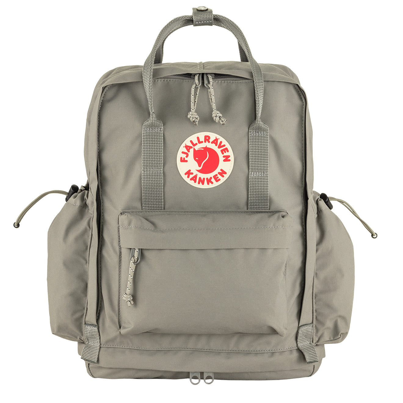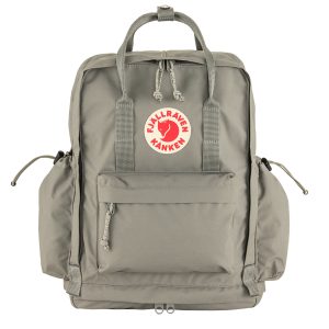 Fjallraven Kanken Outlong Backpack in Fog. the new member of the Kånken family ??a slightly more spacious version of everyone’s favourite backpack. In addition to the classic Vinylon fabric. front pocket and Kånken aesthetics. Kånken Outlong has a zippered compartment in its base. large side pockets. and webbing attachment points that can be used for bike lights or other items. The sleeve pocket in the main compartment has a padded base for a laptop and a seat pad. Perfect for commuting. hiking and other outdoor activities.