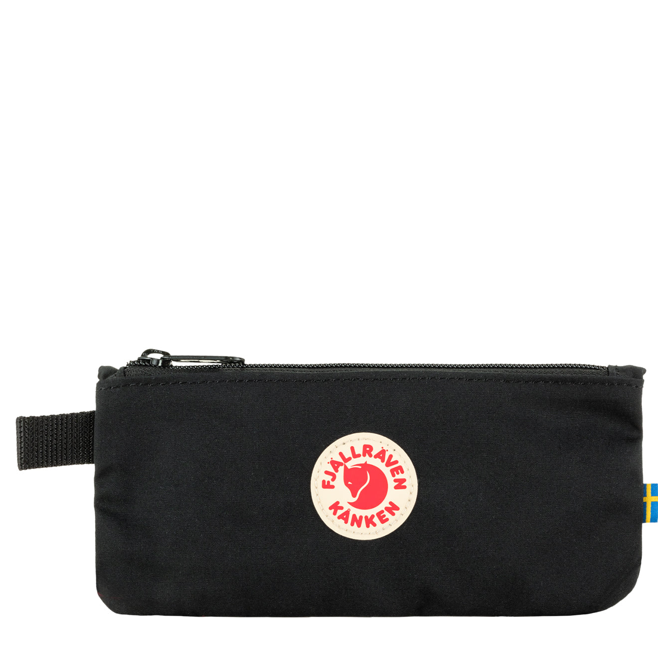 Fjallraven Kanken Pen Case V2 in Black.? Introducing a new pen case to the K?nken range of products. Made of G-1000 HeavyDuty S. it is hardwearing and feels smooth to the touch. This versatile yet simple pen case will only take up the space that is needed for what is stored inside. Zippered opening with space for several pens and a divided internal sleeve suitable for organizing erasers. sharpeners etc. Webbing loop on the side that can be used as a pull tab.