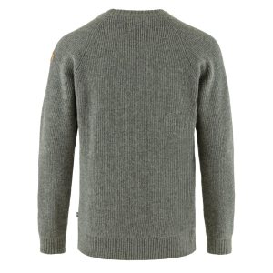 A classic round-neck sweater made from traceable wool. Knitted in a half-cardigan stitch for great insulation and raglan sleeves for comfort and freedom of movement. Ribbed neckline. cuffs and hem. Leather fox logo on sleeve. A fantastic timeless garment perfect to wear year round for everyday activities.