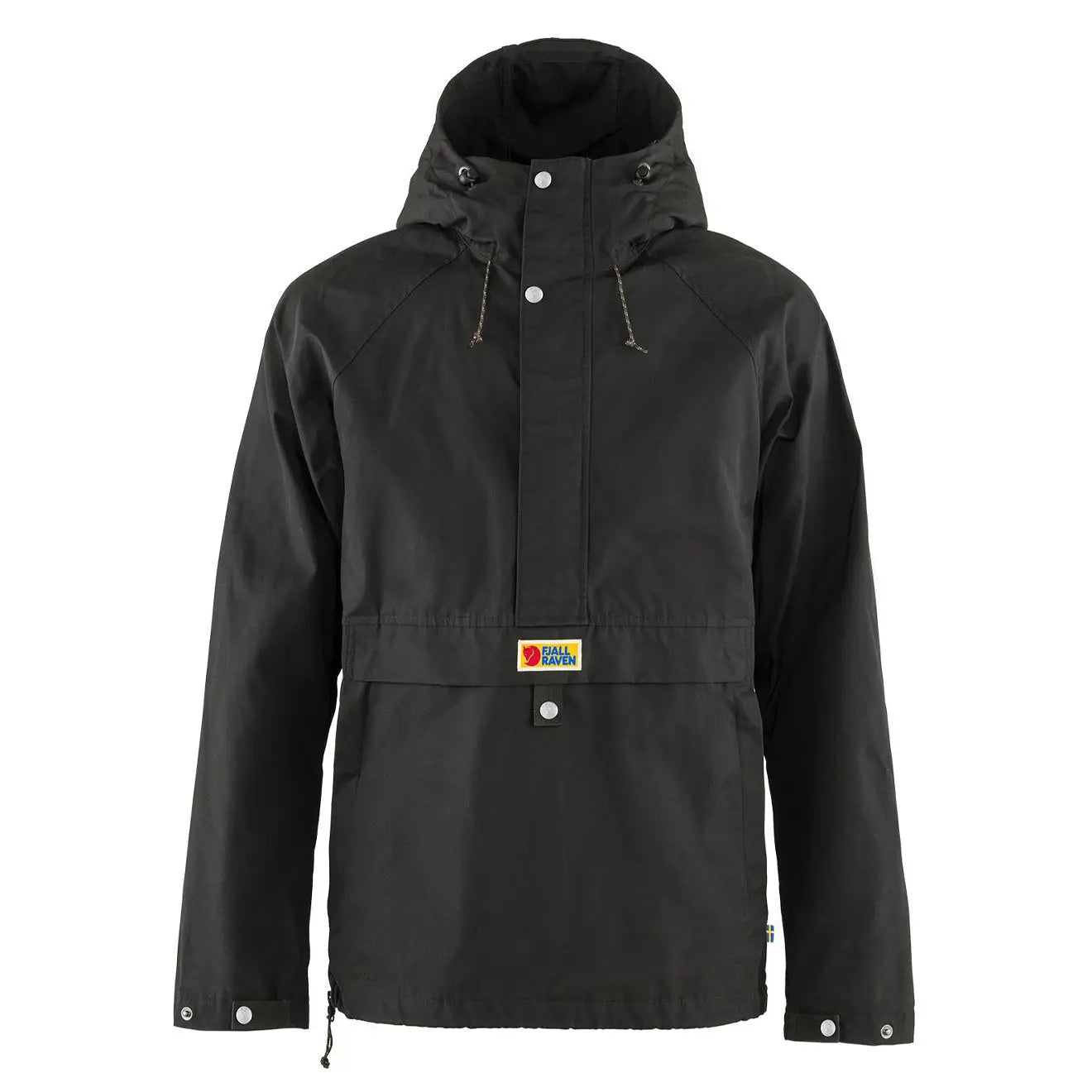 The Fjallraven Vardag Anorak is a wind and water proof pull over anorak in G-1000 Eco. The design features an adjustable hood. casual fit with a long zipper to get on and off. one kangaroo pocket and two hand pockets. Wash 40?? and do not dry clean or tumble dry.