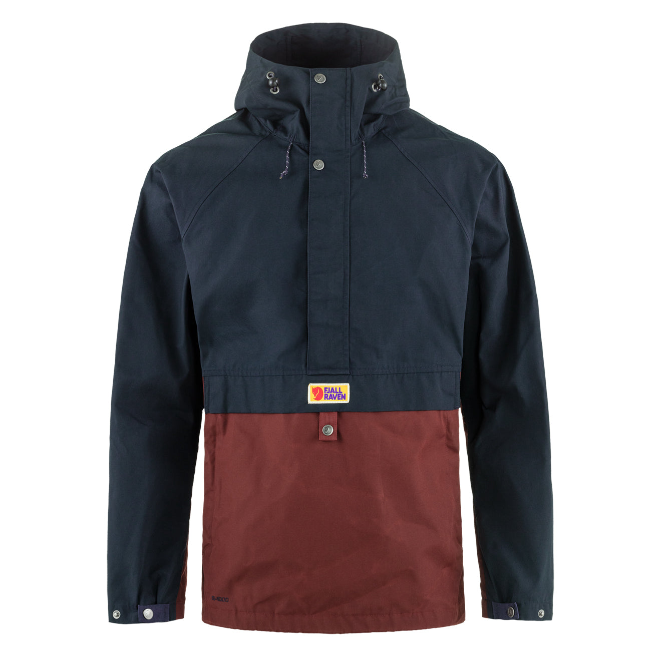 Hike in classic fashion with the Fjallraven Vardag Anorak in Dark Navy/Maroon. Made from durable. weather-resistant G-1000. this anorak features a simple design with an adjustable hood and kangaroo and hand pockets. With a loose fit. long front zipper. and side zipper. it’s effortless to put on. take off. and layer with other pieces. It’s a timeless and long-lasting essential for hiking. day trips. and year-round everyday wear.