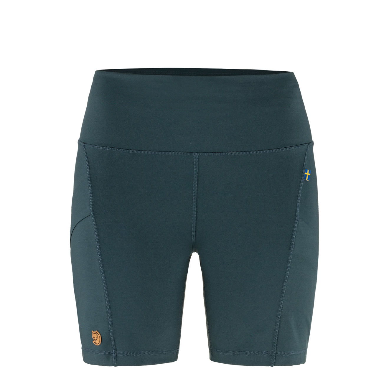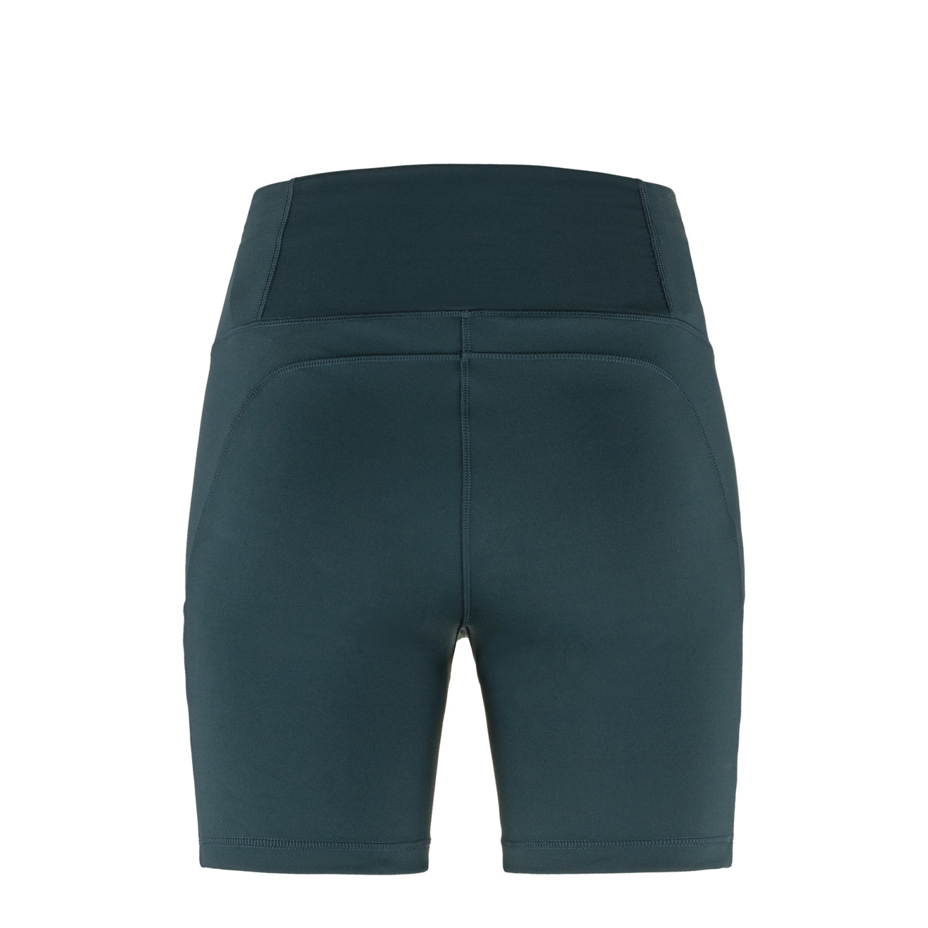 Fjallraven Womens Abisko 6 Inch Shorts Tights Mountain Blue. Well-fitting. short tights with a 6-inch inseam in a moisture-transporting. double-knitted stretch fabric made from recycled polyester with a matte. opaque finish ?C perfect for day hikes and everyday outdoor life. They are also practical under a dress or skirt for commuting and/or to avoid chafing. They have a comfortable. high waistband with inside drawstring that gives a hugged feel. and secure leg pockets that are slightly angled for easy access and a flattering fit.
