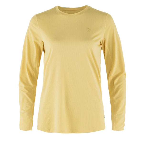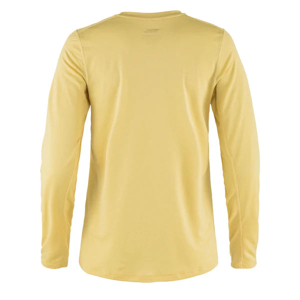 Long-sleeved top for women that is lightweight and functional for general outdoor life. hiking and travelling in warm. sunny climates. Made using a technical jersey knit in partly recycled polyester that wicks away moisture and dries in no time for maximum comfort and sun protection. Excellent freedom of movement thanks to panels under the arms and shoulder seams that are positioned towards the back to reduce the risk of chafing when wearing a backpack. Embroidered logo on the chest.