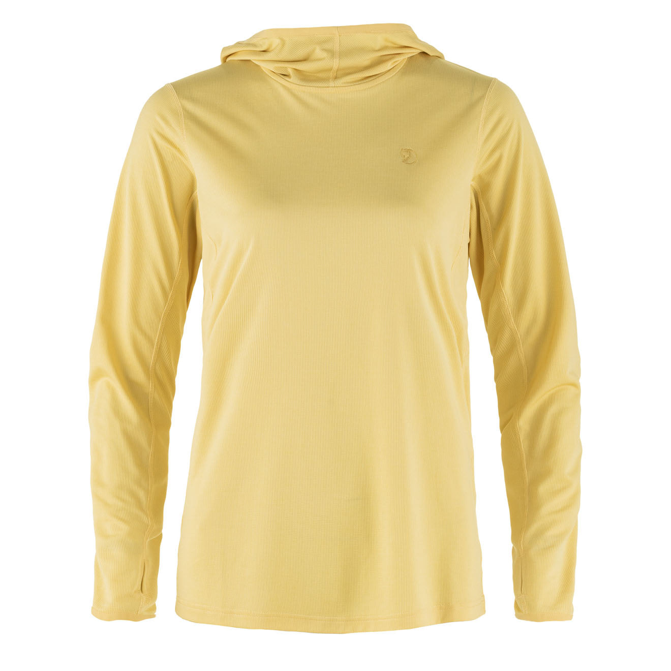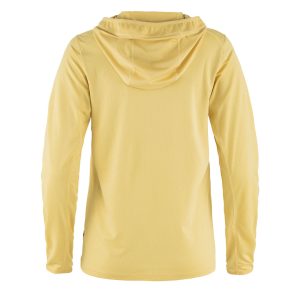 Looking for a versatile and comfy top for your outdoor adventures? Check out this Fjallraven Womens Abisko Sun-Hoodie LS Hooded T-Shirt in Mais Yellow! Made with a moisture-wicking. quick-drying fabric. it’s perfect for sunny hikes. The long sleeves and hood provide light sun protection. while thumbholes keep them in place. And did we mention the extra roomy fit and gussets under the arms for ultimate comfort and freedom of movement??