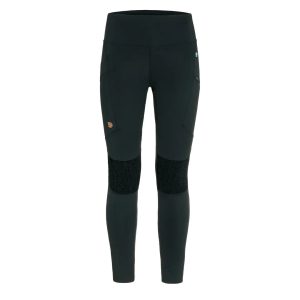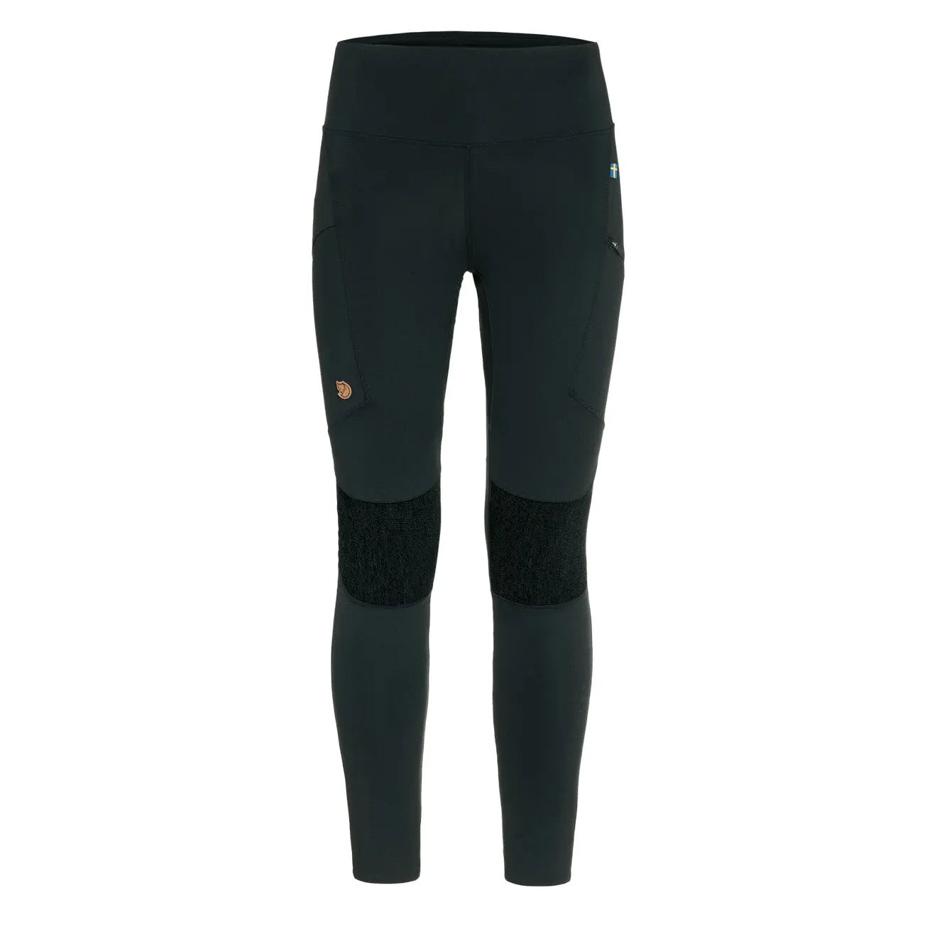 Extra hardwearing trekking tights with reinforcements over the seat and knees. made in a durable. double-knitted stretch fabric made from recycled polyester with a matte. opaque finish. Reinforcement fabric with a water-repellent finish provides extra protection in rough terrain ??Abisko Trekking Tights HD W are well-fitting. highly functional and technical tights perfect for all kinds of trekking where you need full freedom of movement combined with durability. A comfortable. high waistband with inside drawstring and full-length legs with low-profile hems. Secure leg pockets ??one zippered and one with an envelope closure ??angled for easy access and a flattering fit.