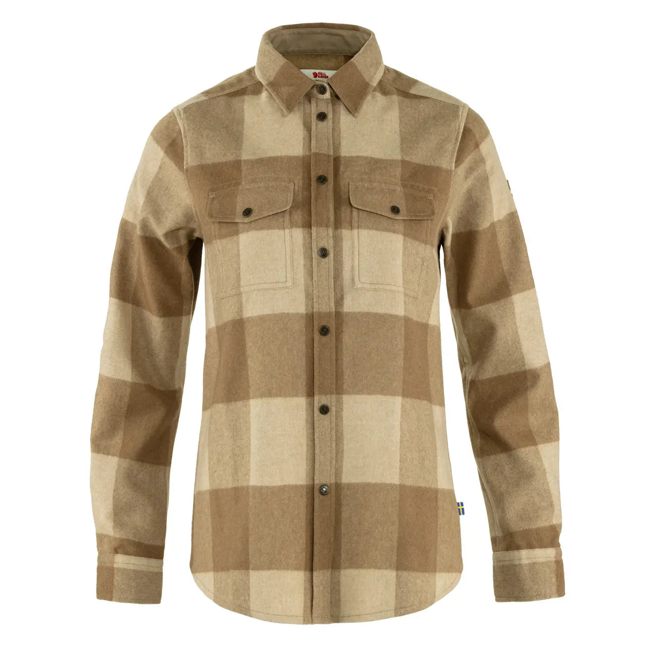 Comfortable. warm long-sleeved shirt in flannel made with recycled wool. A women’s version of the classic Canada Shirt. with a feminine cut and softer fabric. Details in G-1000 Eco on the inside of the collar. cuffs. pocket flaps and front opening. Works well as both a light jacket on mild autumn days and as a robust insulating mid layer over a base layer top.