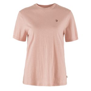 Hemp Blend T-shirt in Chalk Rose is an attractive short-sleeved t-shirt for women in a jersey knit made from hemp and organic cotton. The fabric has a slightly textured surface and drapes well and the shoulder seams have been moved back to reduce the risk of chafing when wearing a backpack. Round neckline and little embroidered logo on the chest.