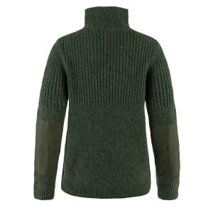 Timeless sweater with a half-length zipper knitted in tuck stitch on the upper chest and sleeves for extra loft and warmth and classic stitch on the lower chest and sleeves. Made from 100% traceable wool with ribbed collar. cuffs and hem. Articulated elbow patches in G-1000 Stretch and classic leather fox logo on sleeve. Perfect for hiking or working outdoors!