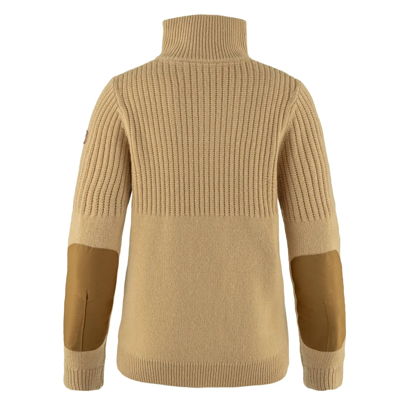 Timeless sweater with a half-length zipper knitted in tuck stitch on the upper chest and sleeves for extra loft and warmth and classic stitch on the lower chest and sleeves. Made from 100% traceable wool with ribbed collar. cuffs and hem. Articulated elbow patches in G-1000 Stretch and classic leather fox logo on sleeve. Perfect for hiking. working outdoors or hunting.
