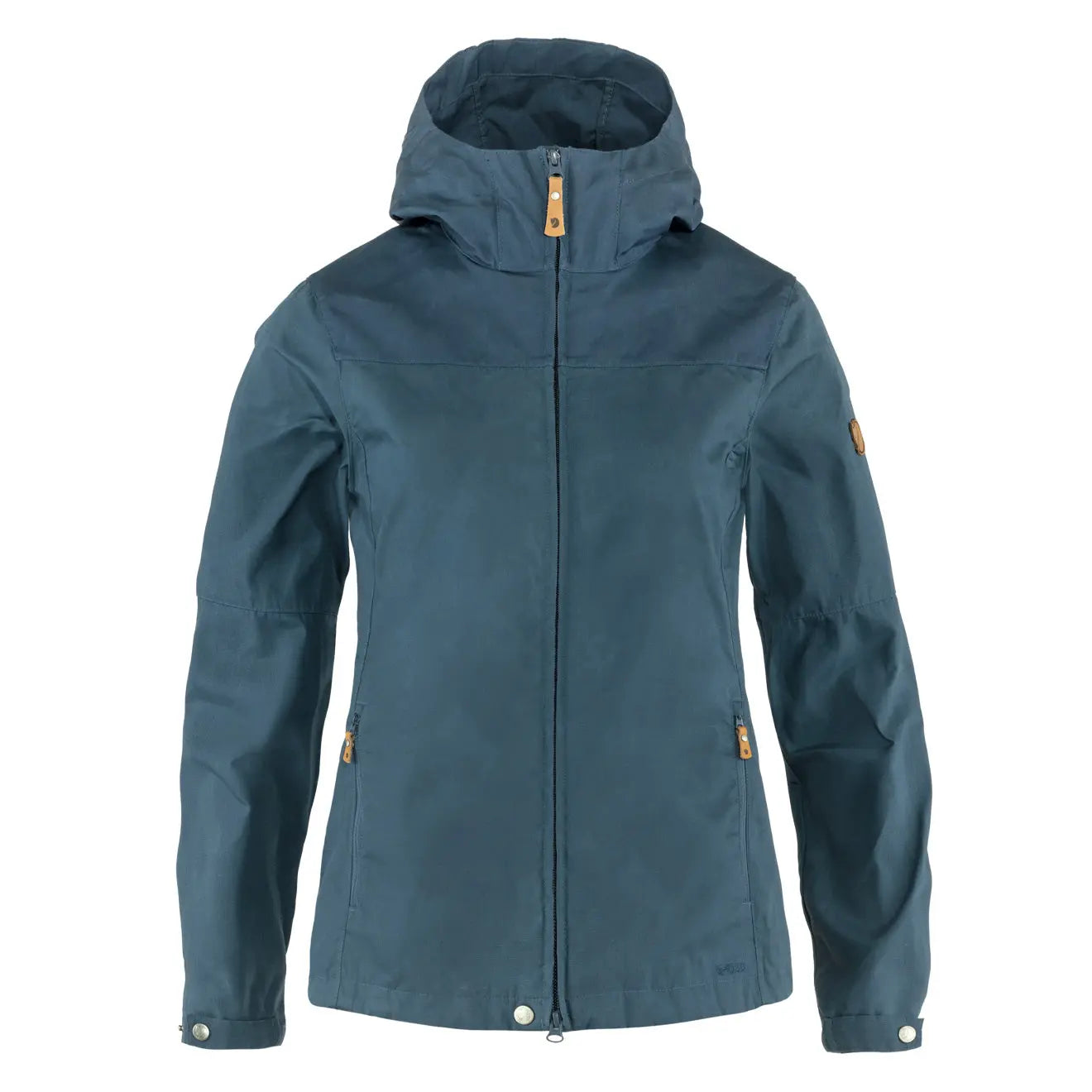 The Fjallraven Womens Stina Jacket comes in durable G-1000 Lite with G-1000 Original over the shoulders. a practical everyday garment that also works well in nature. Pre-shaped sleeves and fixed hood that sits snugly around your face. Two vertical zippered pockets. conveniently placed just under the chest for the least possible bulk.
