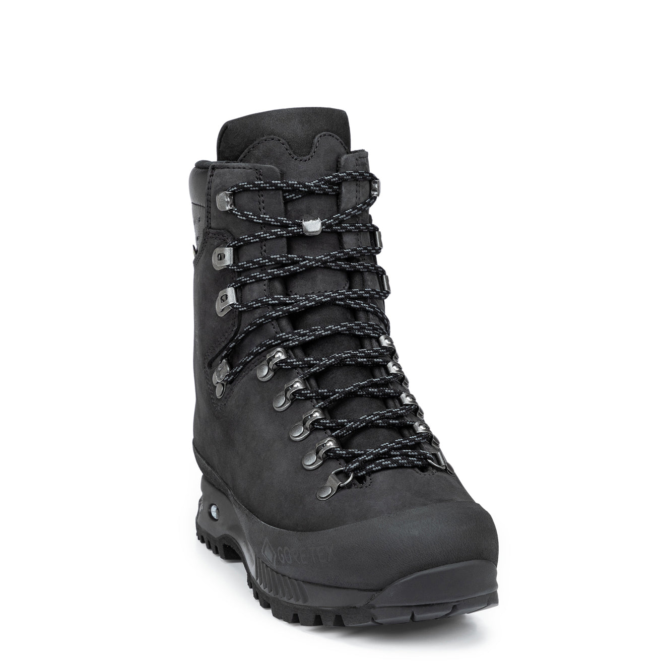 The HANWAG Alaska XC GTX is a robust trekking boot. available since 1996. now offered in customizable color combinations. It features a high. protective cut. a waterproof and breathable GORE-TEX membrane. and a one-piece leather upper for reduced seams and a comfortable fit. The boot includes extra laces for personalization.