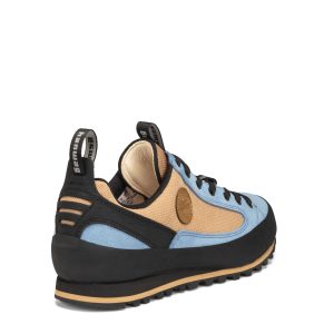 The Hanwag Rotpunkt Low LL Trainer in Cloudy Blue and Light Beige blends classic climbing heritage with modern lightweight design. Featuring a grippy HANWAG rubber outsole and secure heel fit. this low-cut shoe is ideal for outdoor adventures and casual city wear.