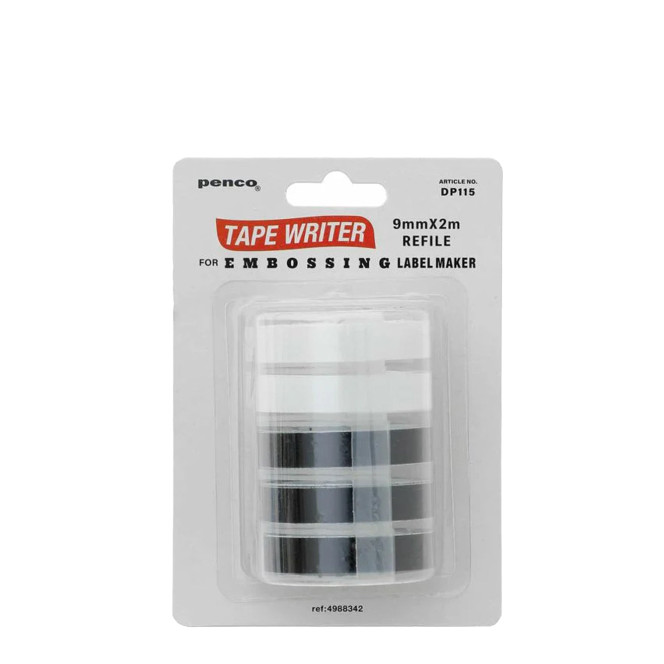 Hightide Embossing Label Maker Refill includes 5 tape refills for the Penco Tape Writer. It creates white embossed letters on transparent or black tape. perfect for personalized and stylish labels.