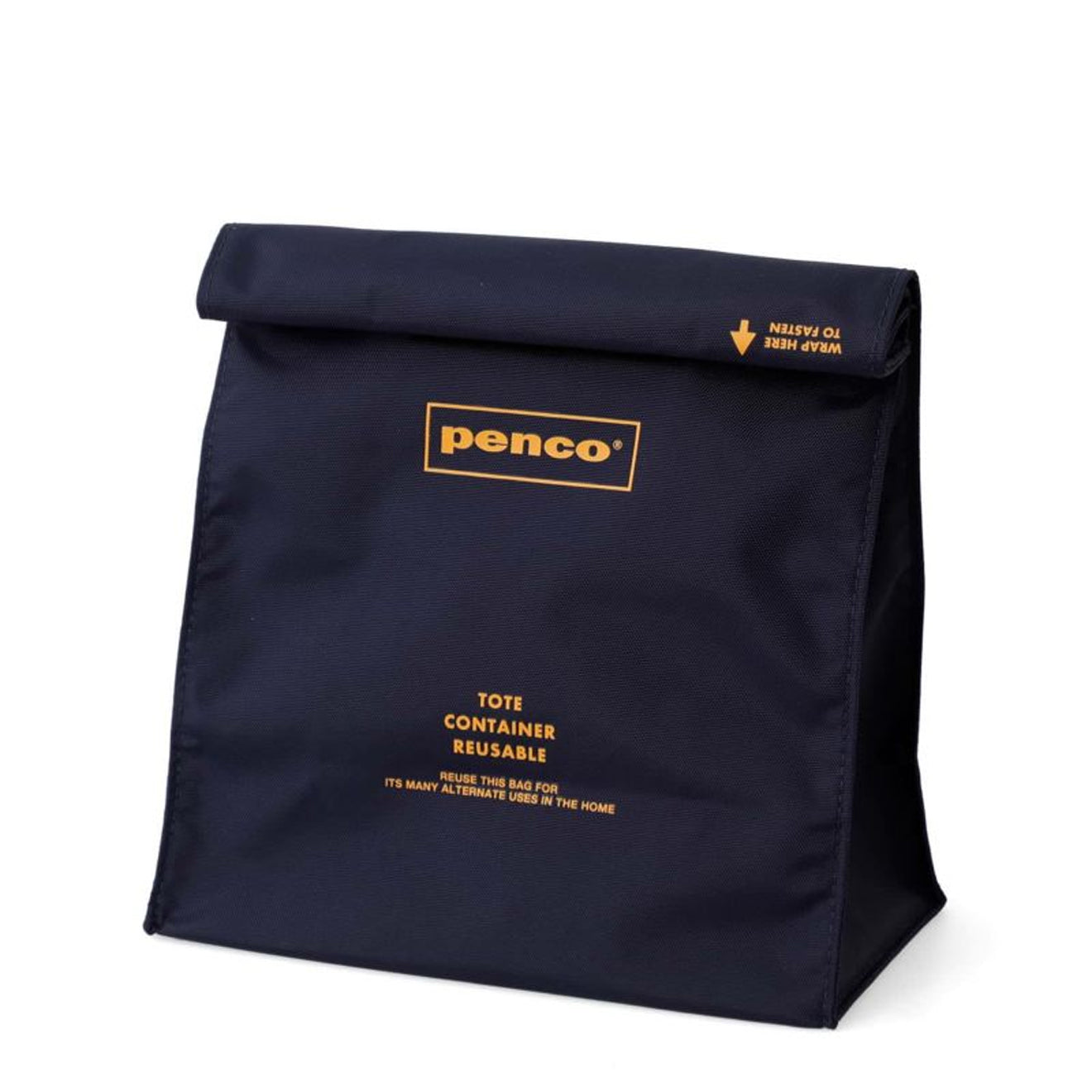 The To-Go Sack is a lightweight. compact nylon bag with a roll-up top sealed like a paper bag for easy access. It features a wide opening and a Velcro pouch for quick content removal. The removable insole adds versatility. making it perfect for lunches. snacks. or small items. With a simple Penco logo. this stylish and practical sack is ideal for anyone on the go.