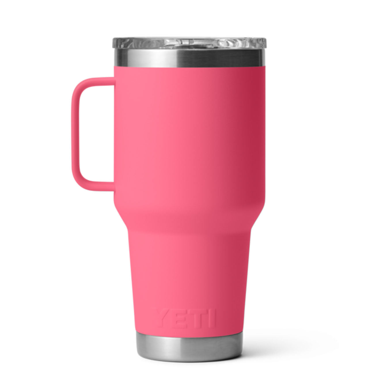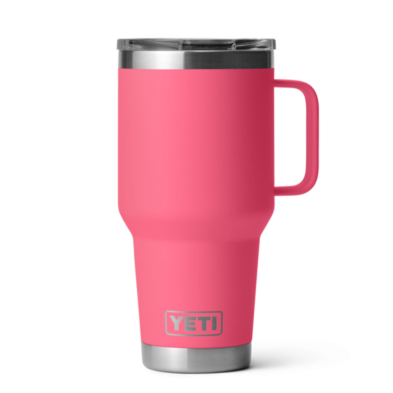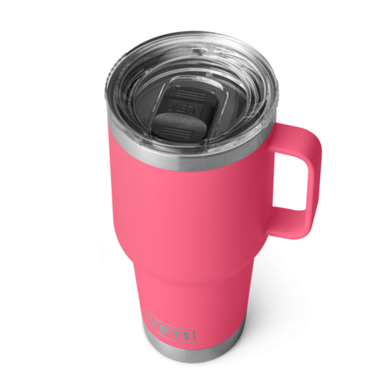YETI Rambler 30oz Travel Mug in Tropical Pink. With an elevated handle and cupholder compatible design. it makes mornings on the road that much easier. Plus. its leak-resistant Stronghold??Lid easily rotates to fasten for both right-and left-handed users —meaning your daily fuel will stay put when you’re on the go. And since both this travel mug and its lid are dishwasher safe. all you have to do is kick up your feet after a well-travelled day.