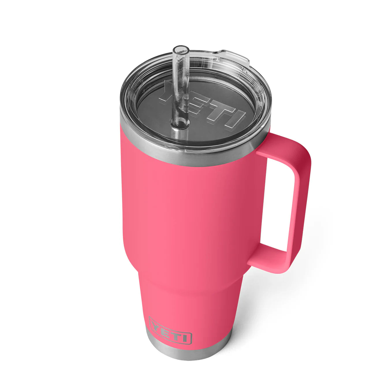 The YETI Rambler 42oz Straw Mug in Tropical Pink uses advanced insulation technology to keep your drinks cooler for longer. helping to cut down on plastic waste. With a spacious capacity and a design that fits comfortably in your hand and most cup holders. it is perfect for long outdoor adventures.